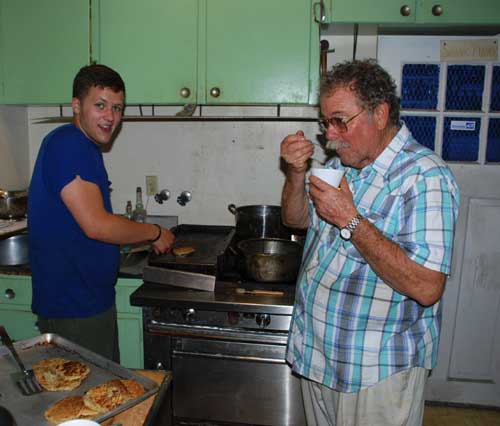 The big day finally arrived. Farmer Margie and her intern Andrew went over early to Possum Trot to help Robert Barnum with the last minute preps for the Potato Pandemonium dinner. His sous chefs Bob and Lindsay were slicing, dicing, frying and stirring.