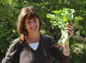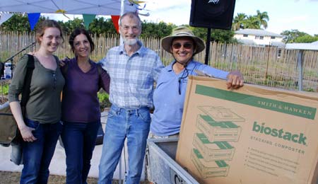 The afternoon wound to a close with the raffle. A Smith & Hawken Biostack Composter was up for grabs. There were a fair number of entries, and people were excited and hopeful to win it. (Apparently this particular composter does a good job, but is rare as hens teeth.) The Sebesta family won the composter, and Nancy B. won a box of produce. Winners, enjoy your prizes in good health!