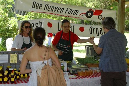 And to complete the circle of eating local, two local growers and one vendor — Bee Heaven Farm, G.R.O.W. and Seriously Organic — brought fruits and veggies, sprouts, eggs and honey.