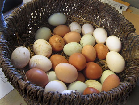 Oh, what a fun post! A little correction: The Araucana breed can only lay blue eggs. “Easter Eggers,” who are essentially chicken “mutts” with a blue-egg gene somewhere in their family tree, lay blue, greenish, or pinkish eggs.