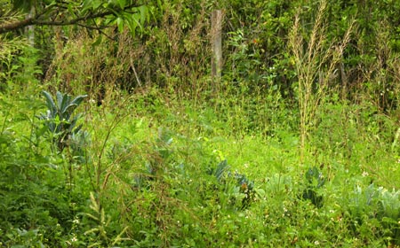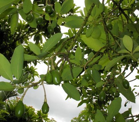 While there was still daylight before dinner, Robert offered guests a short tour of his 40 acre property. Everything he grows is useful in some way. He pointed out bay rum, lemon bay and citronella outside the house, and invited guests to crush leaves and smell different scents. Jaboticaba was nearby, with small, unripe berries growing on its trunk. It bears fruit three or four times a year. Robert harvests the berries for wine, of which we got a taste later in the dinner. Guests strolled through the grove and saw macadamia, mango, and lychee trees (to name just a few of the edibles that I recognized).