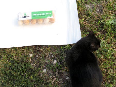 merlot-eggsOver the years, I’ve become good friends with the cats at Bee Heaven Farm. Friday two cats decided I needed help with photos of the shares.