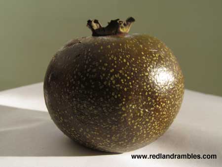 I suggest calling it mud pie fruit, because your hands get wonderfully messy as you prepare the fruit for eating. The soft pudding-like flesh smears on your fingers as you dig out brown shiny seeds and their membranes, and peel off papery skin before eating. Hands get messy fast! Fun for those who enjoyed making mud pies back in the day — only this “mud” is much tastier. Mmmmm lick those fingers, it’s too good to waste!