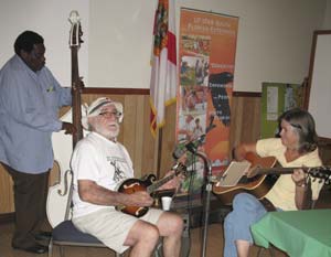 The afternoon’s entertainment was provided by a pickup bluegrass band consisting of Mort Glosser on harmonica, Mike Hatcher on bass, Jim Maiuri on guitar and Louise King on guitar. Mort and Mike play together in a band called Corn Country at the bluegrass festival at Greynolds Park on the first Sunday of every month.