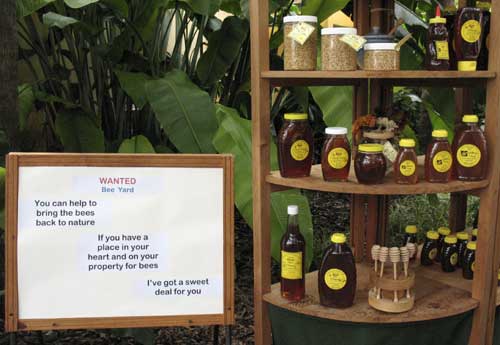 The filmmaker, Maryam Henein, was present to introduce her film and answered questions after the showing. She was accompanied by John Herring, a beekeeper from Broward County, who brought a sample hive and various tools of his trade, who also answered questions about bees. Farmer Margie Pikarsky and interns Mike and Sadie from Bee Heaven Farm came with many boxes of local honey and wildflower bouquets for sale.