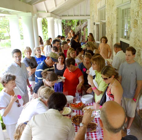 Once the pie was judged, a runner brought it out to the porch, where hungry guests were waiting for a taste. As a Slow Foodie began slicing and doling out pieces, people immediately mobbed the table. You’d think they hadn’t eaten pie in ages. “It’s a feeding frenzy out there,” the runner commented when she returned to the kitchen. I was intrigued by a green avocado pie and a salmon-colored mamey pie, but those vanished before I made it to the table.
